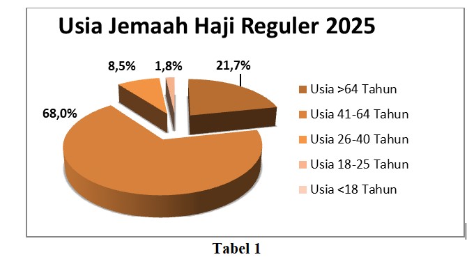 Berdasarkan data hasil “Survei Indeks Kepuasan Jemaah Haji Indonesia (SKJHI) Dalam Negeri 1446H/2025M yang dirilis Badan Pusat Statistik yang rilis 10 September 2025 menunjukkan data usia Jemaah haji pada tabel 1 :