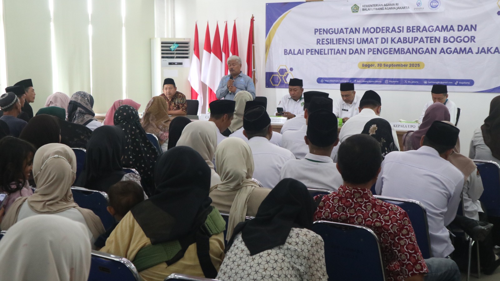 Bogor (BMBPSDM)---Musibah runtuhnya bangunan Majelis Taklim Asobiyah di Desa Sukamakmur, Kecamatan Ciomas, Kabupaten Bogor, pada Minggu (7/9/2025) lalu masih menyisakan duka mendalam. Sebagai wujud empati dan kepedulian, Balai Litbang Agama Jakarta (BLAJ) menggelar Penguatan Moderasi Beragama dan Resilensi Umat yang diikuti oleh 150 orang warga terdampak serta anggota Ikatan Penyuluh Agama Republik Indonesia (IPARI) Kabupaten Bogor.